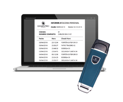 Cuando el lector registra el punto de control y la identificación, también detecta el nombre del guardia, la hora y la fecha en la cual estuvo en la zona.